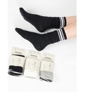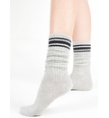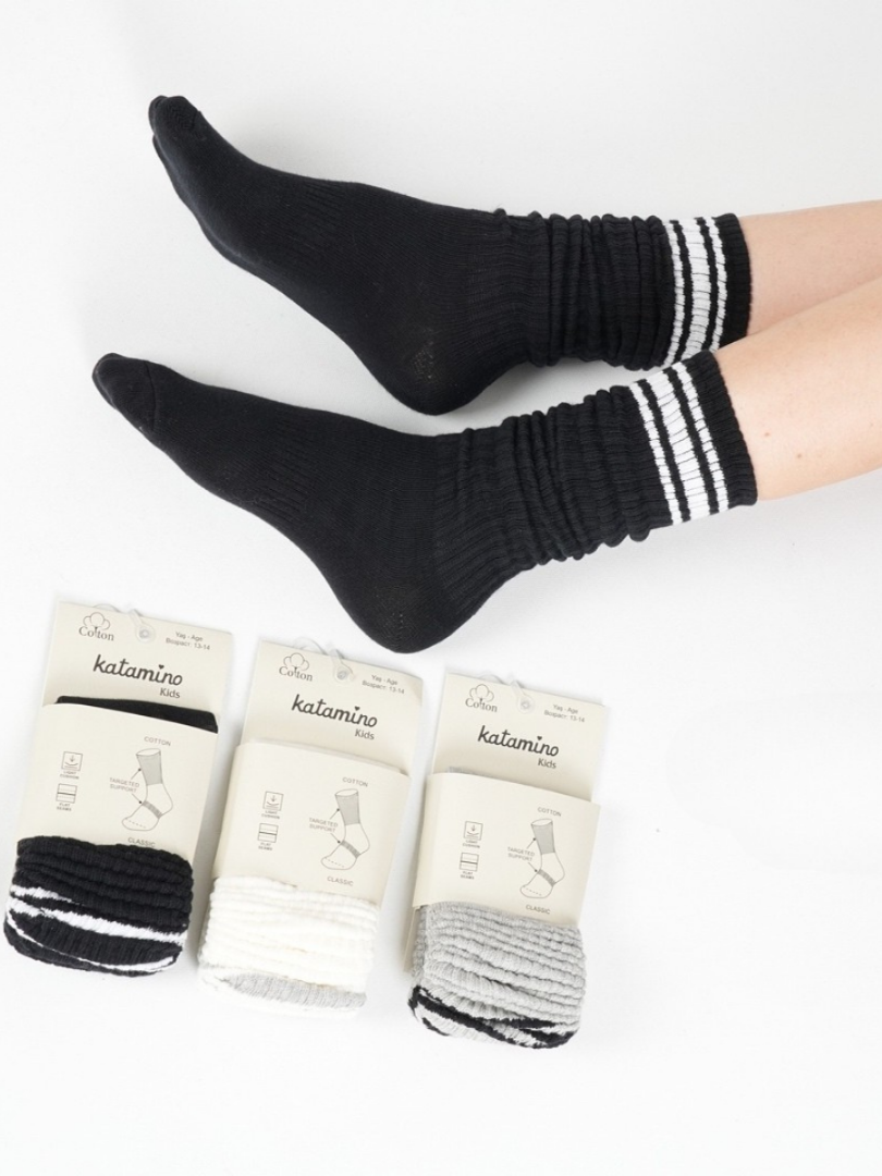 Aceste ciorapi groși pentru copii, realizați din bumbac, de tip genunchieră. Au o textură ribbată vizibilă, ceea ce oferă elasticitate și susținere pe picior. Fără cusătură la degete.