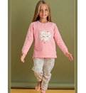 Realizata din material moale, calduros si respirabil, combina confortul bumbacului natural cu interiorul placut de fleece care pastreaza caldura corpului. Partea superioară a pijamalei este cu un guler rotund simplu, și mâneci lungi cu manșete. Pantalonii sunt drepți cu o talie elastică și manșete, pentru a asigura libertate de mișcare și un fit confortabil în timpul somnului.