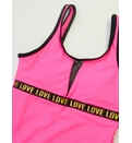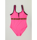 Designul acestui costum este sportiv cu detaliu de dantelă de la decolteu. Confecționat dintr-un material elastic și rezistent, acest model este ideal pentru activitățile acvatice și joaca pe plajă. Bretelele asigură o fixare optimă, făcându-l ușor de îmbrăcat și de purtat. Dublură în partea din față.