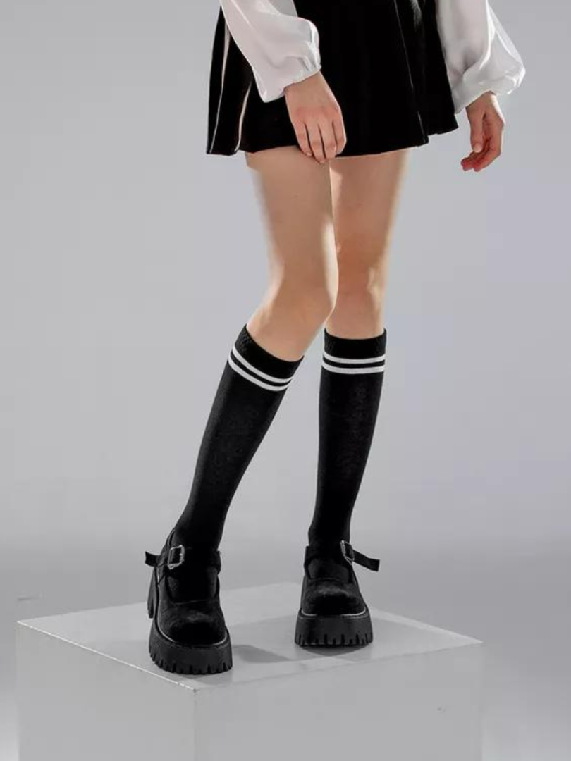 Șosete înalte, uniton, până la genunchi, cu elastic în partea de sus. Fără cusătură la degete.