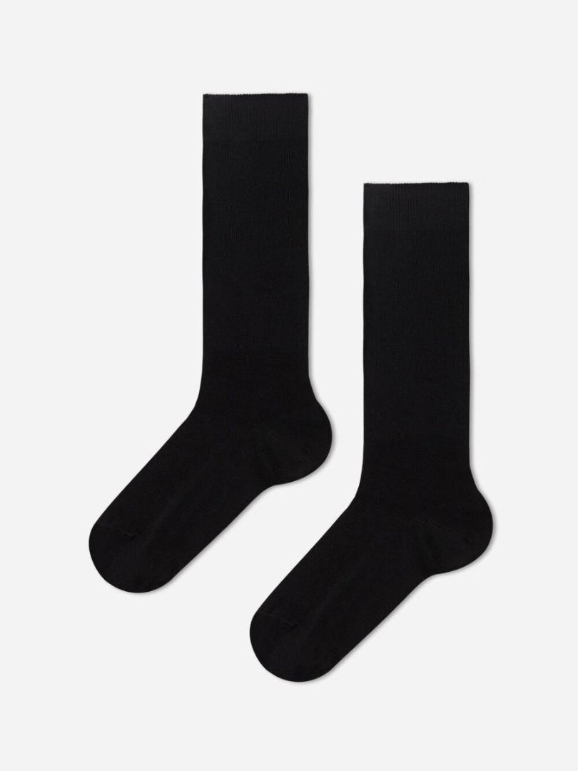 Șosete înalte, uniton până la genunchi, cu elastic în partea de sus. Cu cusătură la degete.