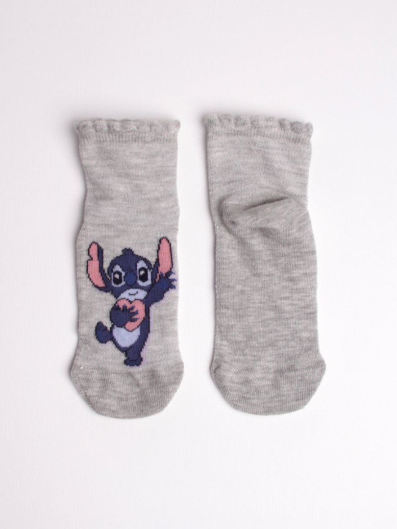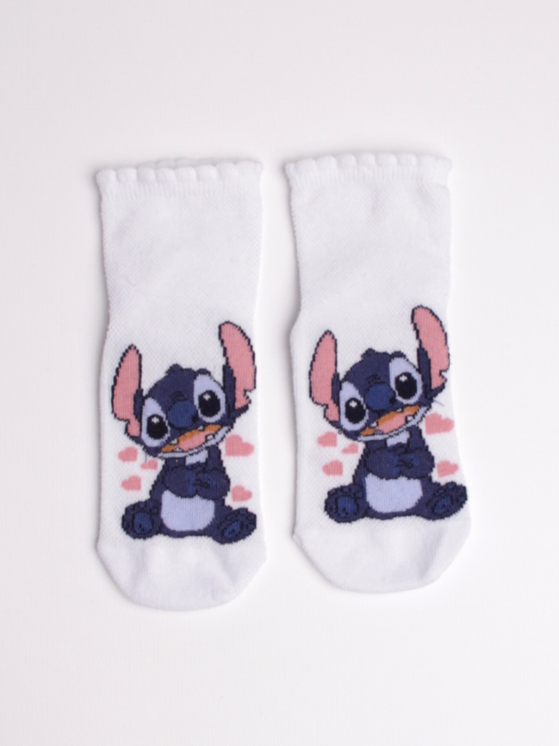 Modelul cu Stitch aplicat frontal adaugă un element jucăuș și colorat, transformând aceste șosete fete cu model într-un accesoriu adorabil pentru orice ținută casual.