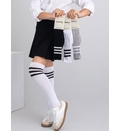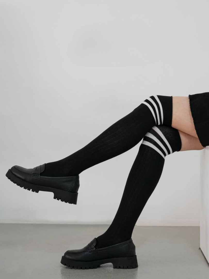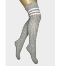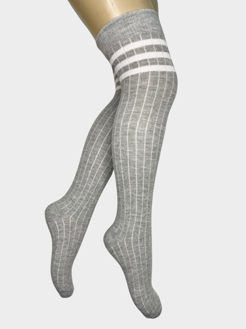 Șosete înalte până peste la genunchi, reiate pe gambă, cu elastic în partea de sus. Cu cusătură la degete.