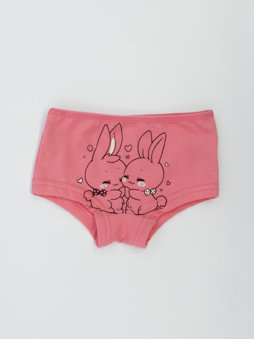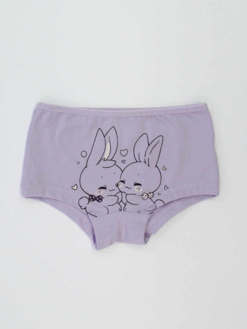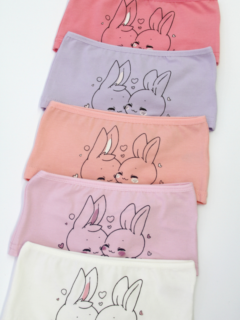 Каждая пара имеет уникальную и весёлую расцветку с изображением кроликов в пастельных тонах, идеально подходящую для маленьких девочек, любящих волшебные истории. Удобные, с ярким дизайном, идеально подходят для повседневной носки. Трусики с подкладкой в области промежности.