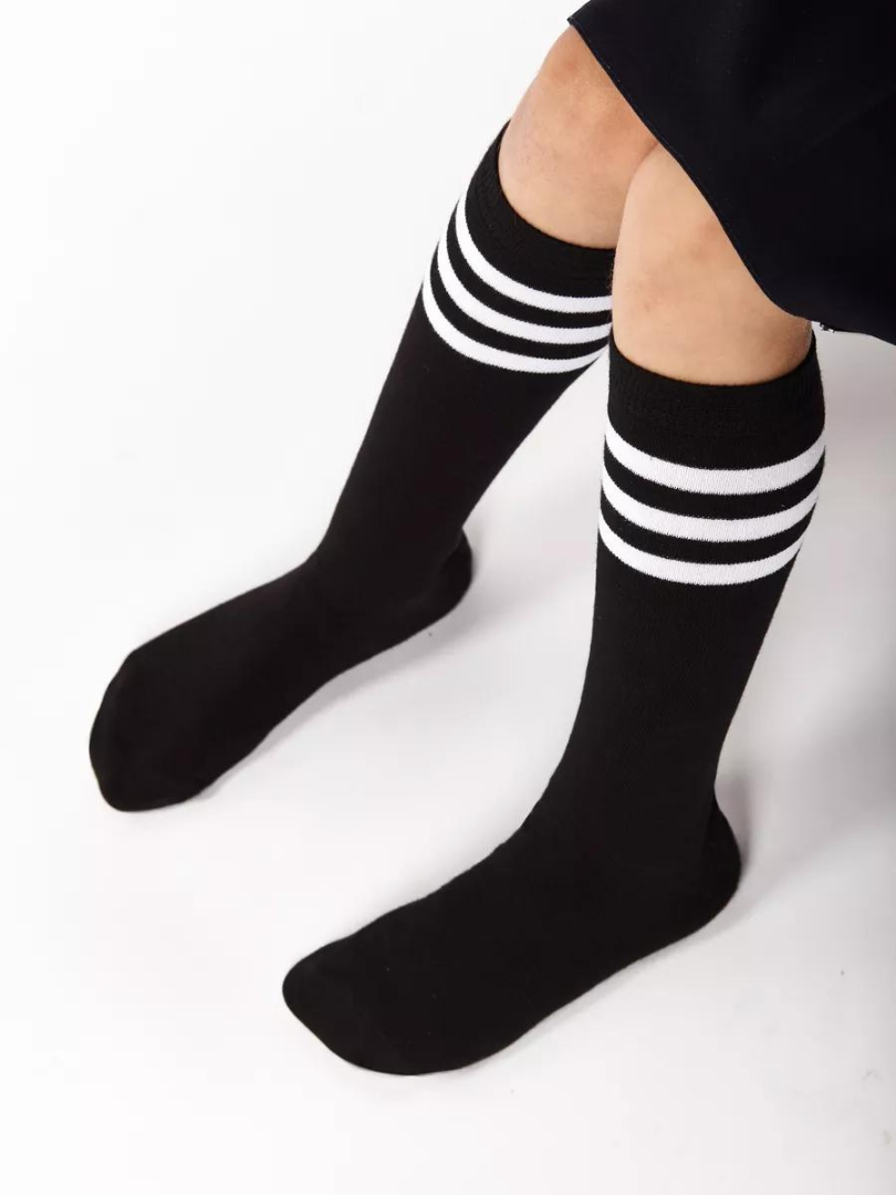 Высокие носки до колена с резинкой сверху, без швов на пальцах.