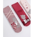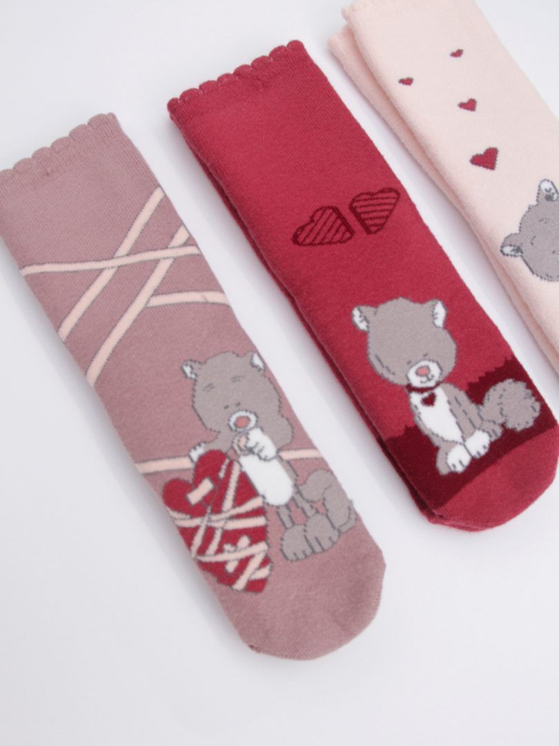Весёлый дизайн с тремя разными узорами превращает эти носки с плюшевыми мишками в любимые носки малышей. Женственные цвета: бледно-розовый, тёмно-красный и пыльно-фиолетовый – легко сочетаются с повседневной одеждой или пижамой. Они сохраняют форму и мягкость после каждой стирки. Нет швов на пальцах.