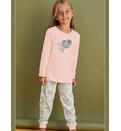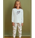 Эта пижама сочетает в себе функциональность натурального хлопка и очаровательный дизайн, призванный согреть и подарить улыбку детям прохладными вечерами. Верх пижамы имеет простой круглый воротник и длинные рукава с манжетами. Штанишки прямого кроя с эластичной талией и манжетами обеспечивают свободу движений и комфорт во время сна.