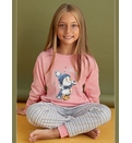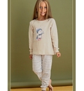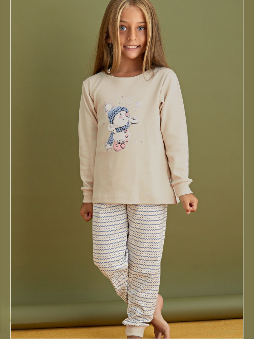 Эта пижама сочетает в себе функциональность натурального хлопка и очаровательный дизайн, призванный согреть и подарить улыбку детям прохладными вечерами. Верх пижамы имеет простой круглый воротник и длинные рукава с манжетами. Штанишки прямого кроя с эластичной талией и манжетами обеспечивают свободу движений и комфорт во время сна.
