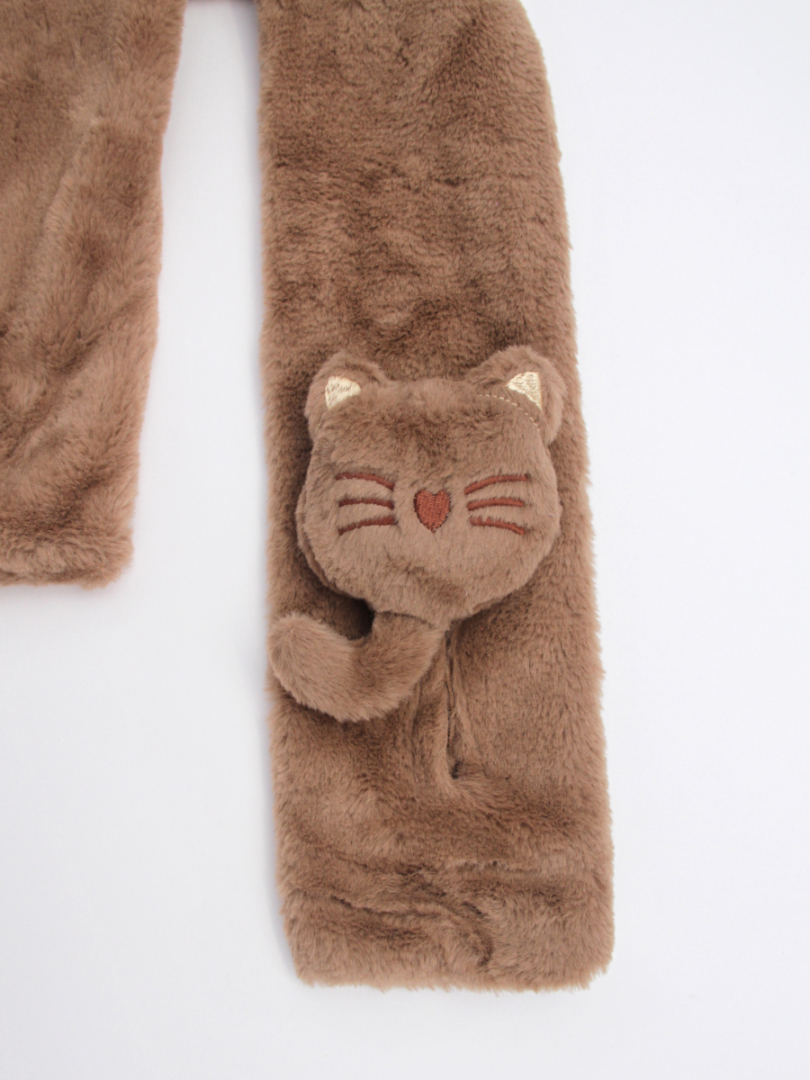 Милый дизайн с аппликацией в виде котёнка и объёмным хвостом добавит очарования любому зимнему образу. Шарф легко застёгивается через специальное отверстие, обеспечивая комфорт и надёжную фиксацию на шее.