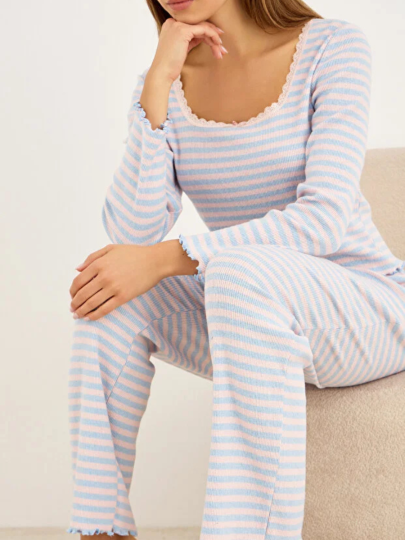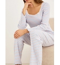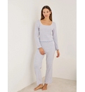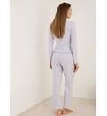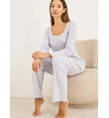 Блузка с длинными рукавами и квадратным вырезом. Прямые брюки с эластичным поясом. Материал обладает отличными теплоизоляционными свойствами и долго сохраняет свой внешний вид после стирки. Свободный крой и изысканная отделка делают эту пижаму идеальной для отдыха дома или спокойного сна холодными ночами. Приятная на ощупь текстура защищает кожу и сохраняет естественное тепло тела.