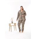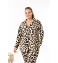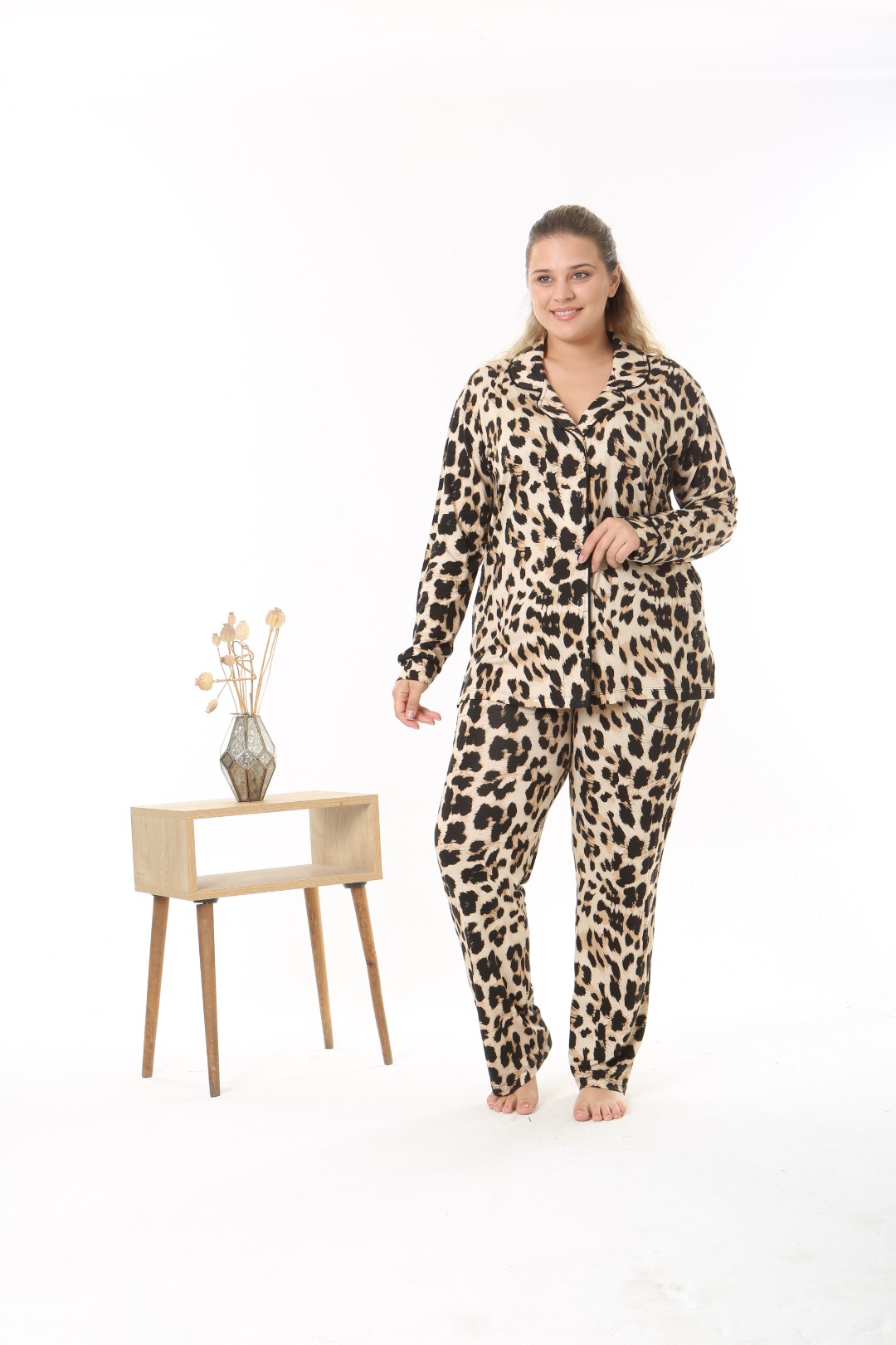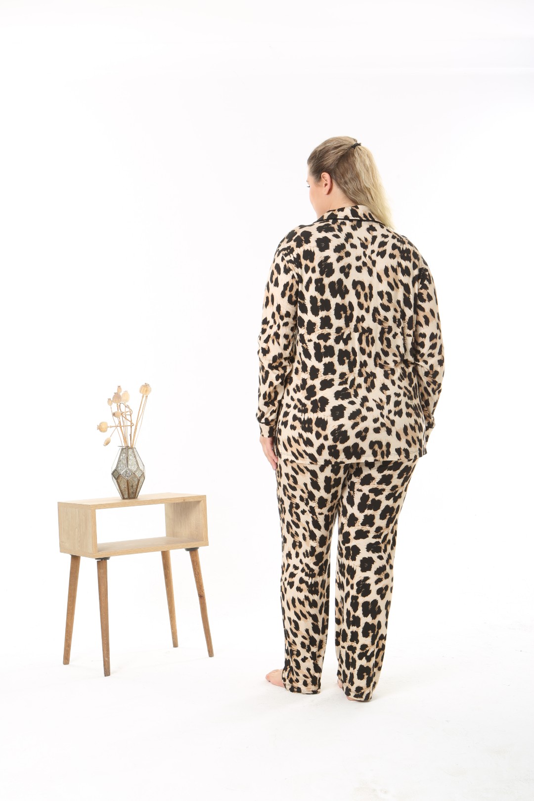 Подарите себе заслуженное удовольствие каждую ночь с этим пижамным комплектом из вискозы, в котором гармонично сочетаются комфорт и элегантность. Идеальный вариант для себя или в качестве особого подарка любимому человеку! Высококачественная вискоза, лёгкая и дышащая, шелковистая на ощупь. Свободный крой, рубашка с длинными рукавами, классический воротник и пуговицы, прямые брюки с резинкой на талии деликатно адаптируются к форме тела. Анималистичный принт в натуральных бежевых и чёрных тонах легко сочетается с вашими любимыми халатами или тапочками.
