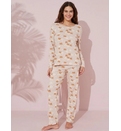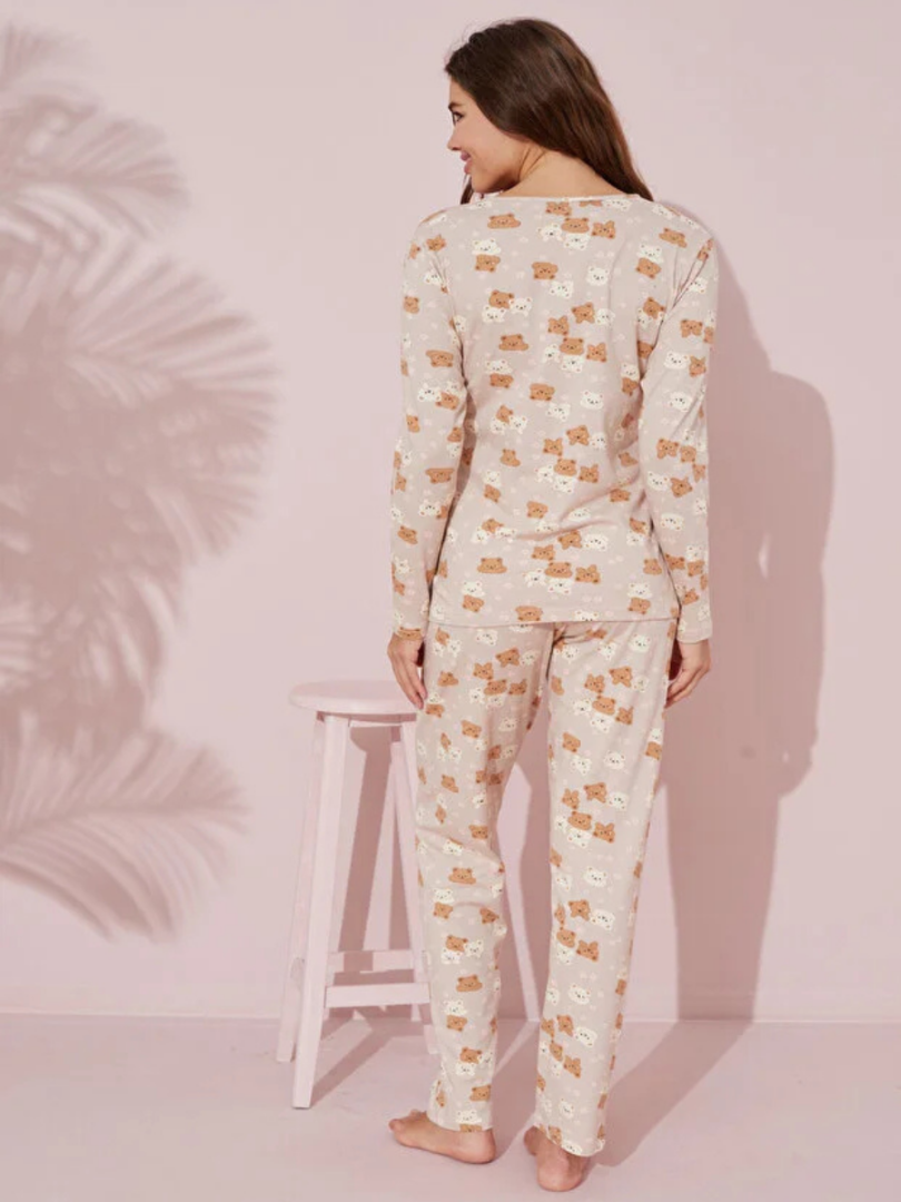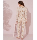Комплект состоит из блузки с длинными рукавами и длинных брюк. Свободный крой обеспечивает свободу движений, идеально подходит как для сна, так и для отдыха дома. Удобная и практичная, эта хлопковая пижама станет незаменимой вещью в вашем домашнем гардеробе, гарантируя комфорт и элегантный вид даже во время отдыха.