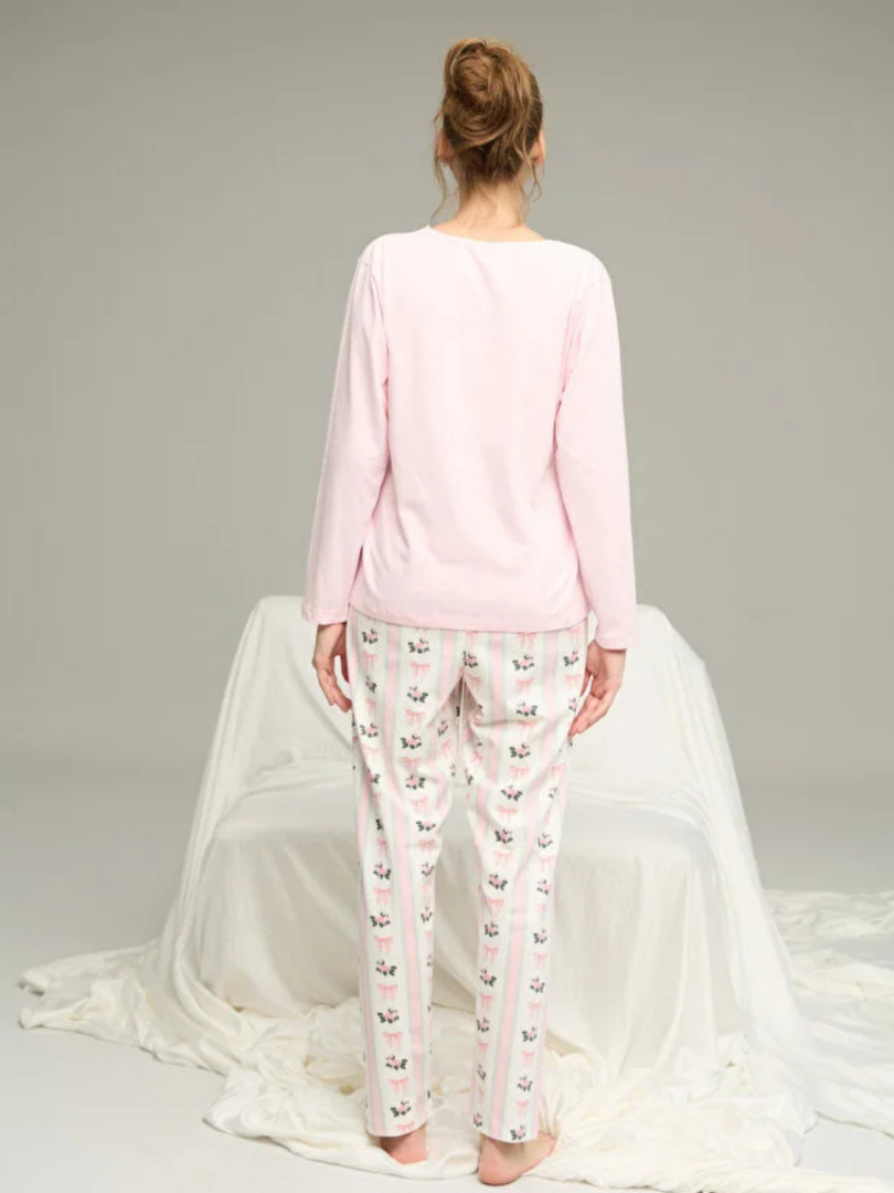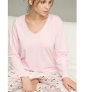 Комплект состоит из блузки с длинными рукавами и длинных брюк нежно-розового цвета, которые добавят женственности и стиля. Свободный крой обеспечивает свободу движений, идеально подходящая как для сна, так и для отдыха дома. Элегантная и практичная одновременно, эта хлопковая пижама станет незаменимой вещью в вашем домашнем гардеробе, гарантируя комфорт и элегантный вид даже во время отдыха.