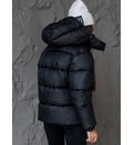 Женская зимняя куртка из высококачественного стеганого материала, ветро- и влагоотталкивающего. Она идеально подходит для холодных дней, обеспечивая отличную теплоизоляцию и максимальный комфорт благодаря лёгкому и тёплому наполнителю. Модель имеет современный, слегка свободный крой, идеально подходящий для городского и расслабленного образа. Высокий воротник и практичный капюшон обеспечивают дополнительную защиту от холода, а глубокие боковые карманы идеально подходят для согрева рук или хранения личных вещей.