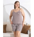 Maioul este decorat cu dantelă delicată la decolteu, adăugând un plus de feminitate și eleganță. Pantalonii scurți au talie elastică confortabilă, ceea ce face ca această pijama damă mărimi mari să fie potrivită pentru orice siluetă.