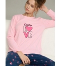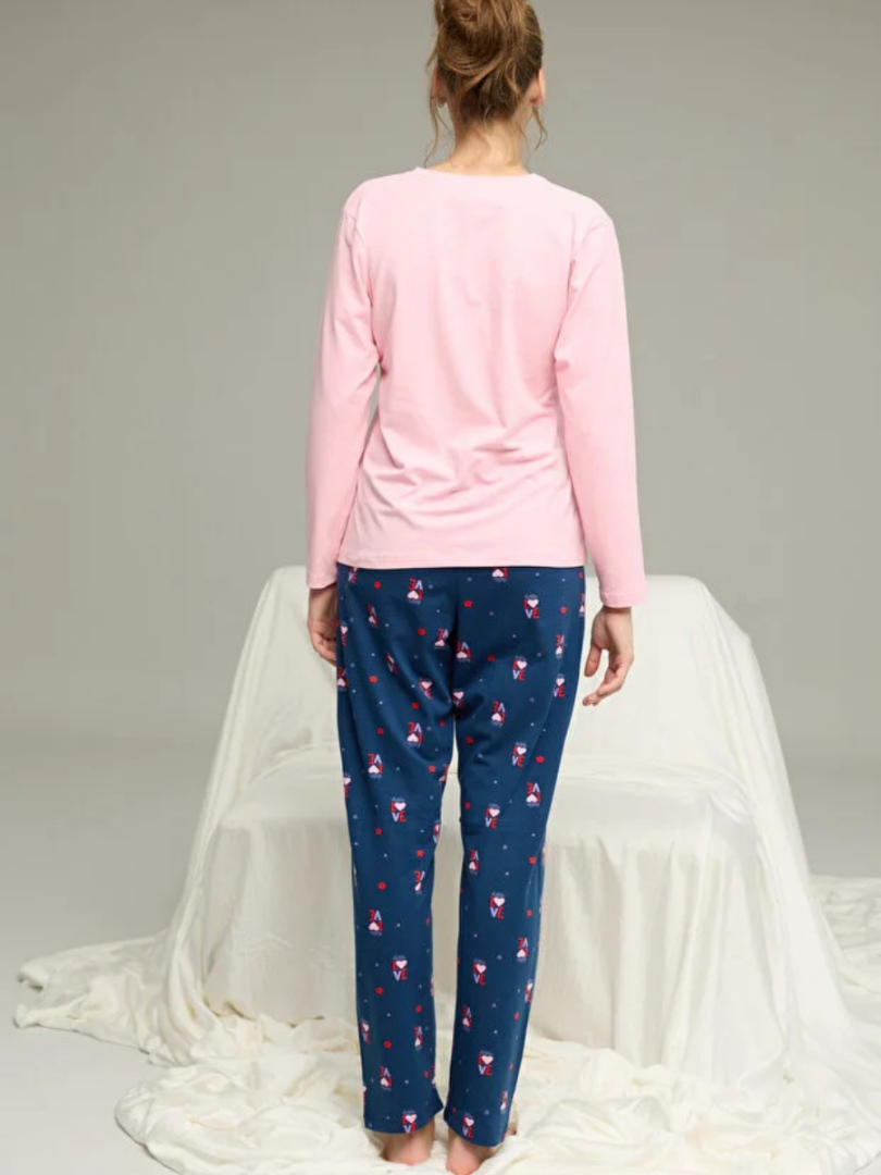 Setul include bluză cu mânecă lungă și pantaloni lungi. Croiala lejeră asigură libertate de mișcare, fiind ideală atât pentru somn, cât și pentru relaxarea de acasă. Comodă și practică în același timp, această pijama din bumbac este un must-have în garderoba de homewear, garantând confort și un aspect chic chiar și în momentele de odihnă.