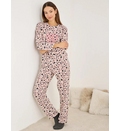 Bluză cu mâneci lungi, cu decolteu rotund. Pantaloni drepti cu elastic în talie. Materialul este de fleece este un izolant termic foarte bun și la spălare își păstrează aspectul pe termen îndelungat. Croiala lejeră și finisajele fine fac ca această pijama să fie perfectă pentru relaxare acasă sau pentru un somn odihnitor în nopțile reci. Textura plăcută la atingere protejează pielea și menține căldura naturală a corpului.