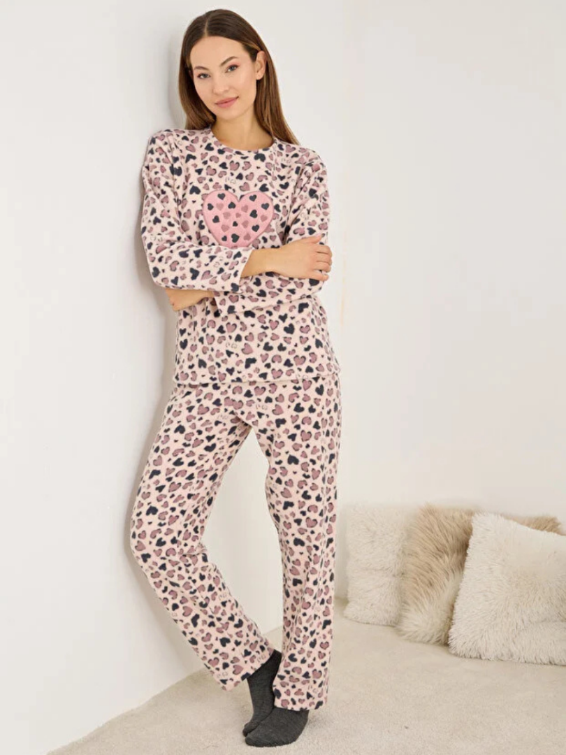 Pijama din fleece cu inimioare