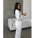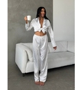 Setul este format din cămașă cu nasturi și pantaloni lungi, având o croială clasică reinterpretată într-un stil modern și feminin. Detaliile contrastante și liniile curate oferă un aspect sofisticat, ușor de remarcat.