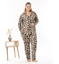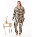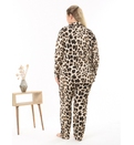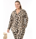 Oferă-ți răsfățul meritat în fiecare seară cu acest set pijama din vâscoză, unde confortul și eleganța se împletesc armonios. Perfect pentru tine sau ca un cadou special pentru cineva drag! Material premium vâscoză, ușoară şi respirabilă, cu senzaţie mătăsoasă la atingere. Croială lejeră, cămașă cu mâneci lungi, guler clasic și nasturi, pantaloni drepți, cu talie elastică, se adaptează delicat formei corpului. Imprimeu animal print în nuanţe naturale de bej şi negru, ușor de asortat cu halate sau papuci preferaţi.