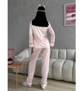 Setul este format din cămașă cu nasturi și pantaloni lungi, având o croială clasică reinterpretată într-un stil modern și feminin. Detaliile contrastante și liniile curate oferă un aspect sofisticat, ușor de remarcat.