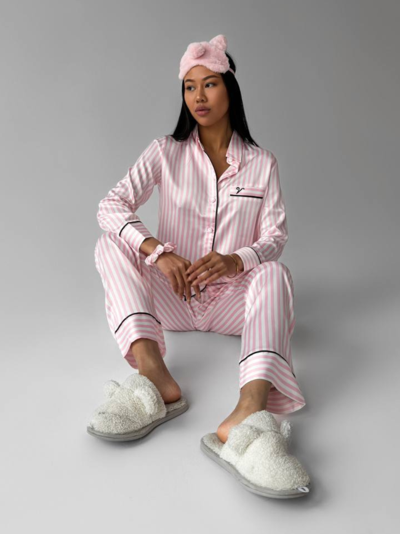 O pijama din satin care îmbină eleganța cu confortul, pentru seri în care vrei să te simți răsfățată.