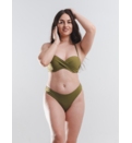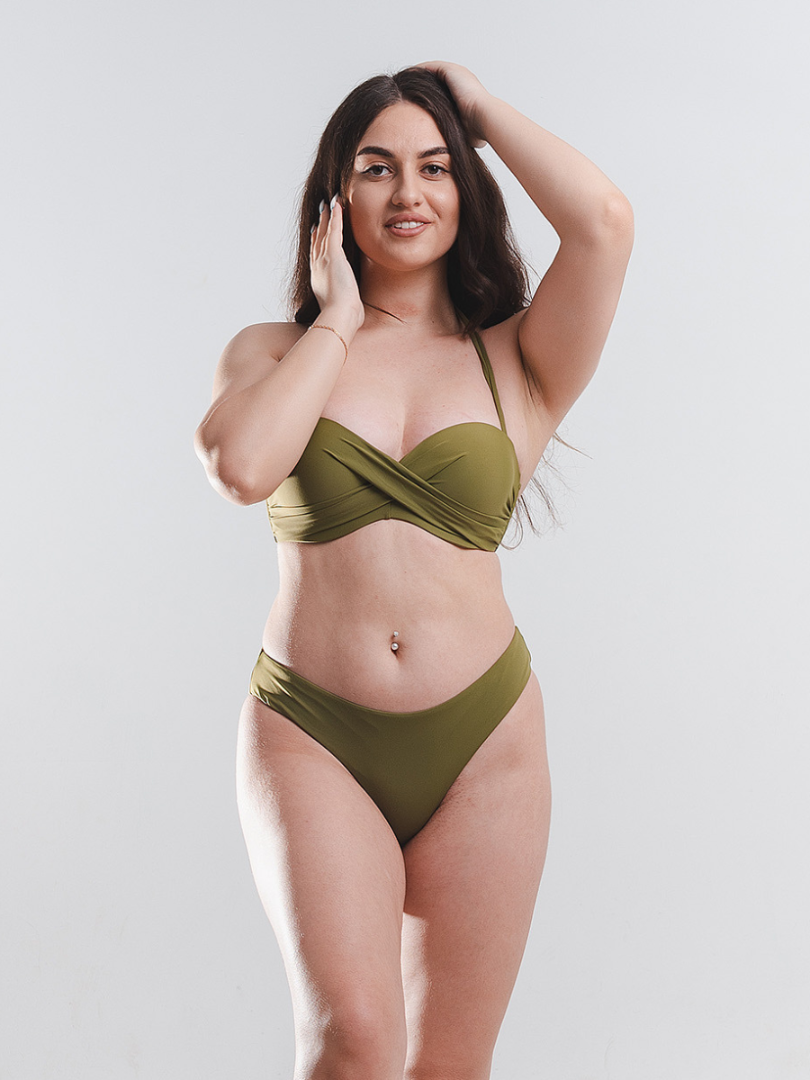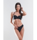 Sutien balconette cu bretele detașabile. Cupe cu dublu push up, căptușite, cu armătură, care ridică și modelează bustul. Se leagă la spate. Sutienul oferă suport optim și accentuează decolteul cu o formă rotunjită. Ideal pentru a crea un look feminin senzual. Slip de baie brazilian, cu cusătură verticală, cu dublură pe întreaga suprafață, cu talie medie.