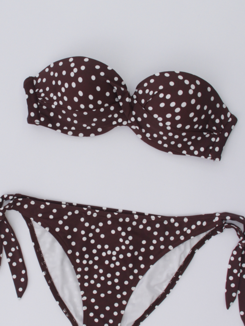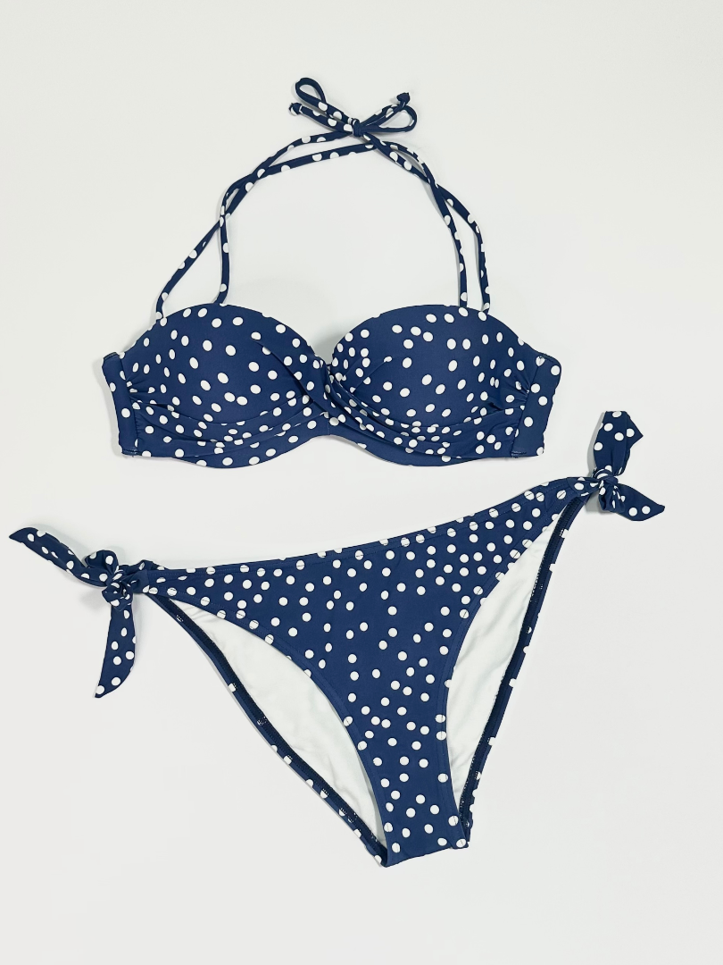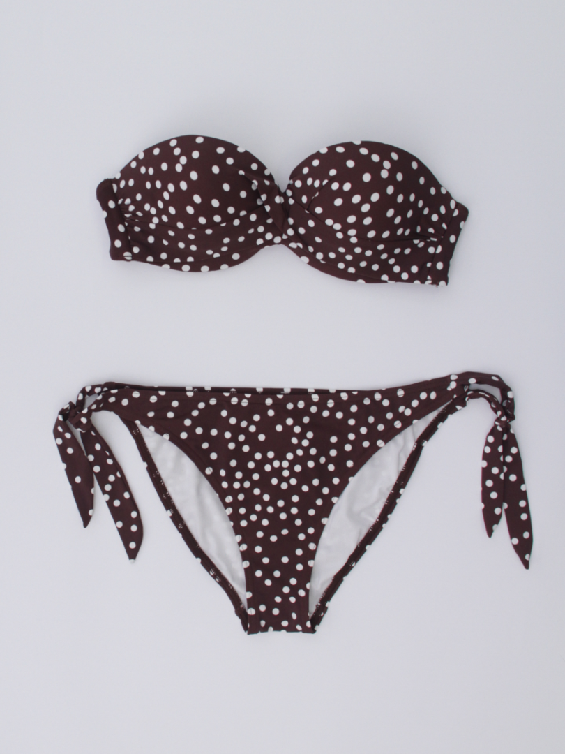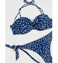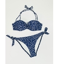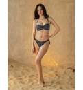 Sutien balconette cu bretele detașabile. Cupe cu dublu push up, cu armătură, care ridică și modelează bustul. Se leagă la spate. Sutienul oferă suport optim și accentuează decolteul cu o formă rotunjită. Ideal pentru a crea un look feminin senzual. Slip de baie clasic cu legături în laterale, cu dublură pe întreaga suprafață, cu talie medie.