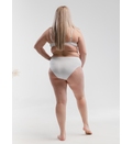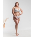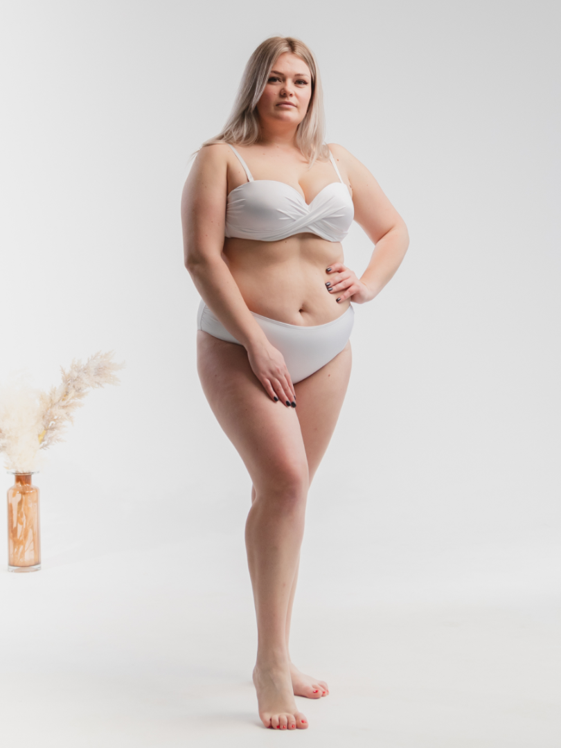 Sutien balconette fără push up, cu bretele detașabile, reglabile. Se leagă la spate. Cupe căptușite, cu armătură, care ridică și modelează bustul. Sutienul oferă suport optim și accentuează decolteul cu o formă rotunjită. Ideal pentru a crea un look feminin senzual. Slip de baie cu dublură pe întreaga suprafață, cu talie medie, mai lat în laterale.