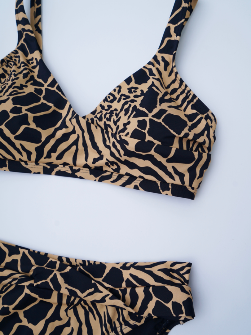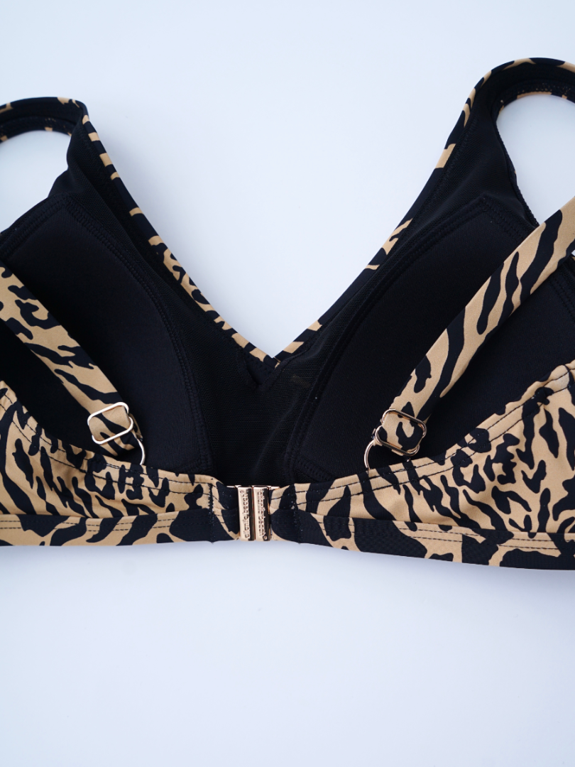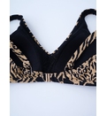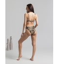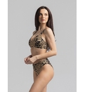 Sutien fără armatura, cu dublură pe toată suprafața, inserții nedetașabile. Se încheie la spate. Bretele late ajustabile. Slip clasic cu dublură pe toată suprafața, cu talie normală, cu încrucișare în partea din față.