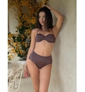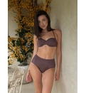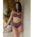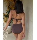 Acest costum de baie din două piese, într-o nuanță rafinată de maro, este alegerea perfectă pentru femeile care apreciază eleganța și confortul. Sutienul are cupe ușor conturate, fără push up și breteluțe subțiri detașabile, oferind susținere și o siluetă feminină. Se leagă la spate. Partea de jos are talie înaltă, avantajând orice tip de corp, alungind optic picioarele și modelând abdomenul.Slipi clasici asigură o acoperire medie și un look sexy, ideal pentru plajă. Dublură pe întreaga suprafață.