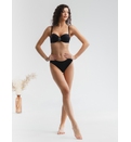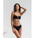 Sutien balconette fără push up, cu bretele subtiri detașabile, reglabile la spate. Cupe căptușite, cu armătură, care ridică și modelează bustul. Se leagă la spate. Accesoriu de metal detașabil. Sutienul oferă suport optim și accentuează decolteul cu o formă rotunjită. Slip de baie clasic cu talie normală.