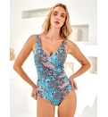 Îndrăznește să te remarci cu acest costum de baie care sărbătorește frumusețea feminină în fiecare cută și fiecare culoare. Costum de baie întreg, fără arcuri. Drapajul încrucișat modelează și pune în valore silueta. Efect modelator pe abdomen. Materialul extrem de moale îl face plăcut de purtat, oferind o senzație de lejeritate și confort la nivelul pielii. Bretele reglabile. Forma de V a decolteului adaugă o notă de feminitate și rafinament, fiind perfectă pentru a te simți încrezătoare și atrăgătoare. Costumul este accentuat cu strasuri ce adaugă un toc special, oferind un aspect elegant și strălucitor. Aceste strasuri sunt bine fixate, ceea ce asigură durabilitate și rezistență la desprindere, chiar și în utilizarea frecventă. Dublură pe întreaga suprafață.