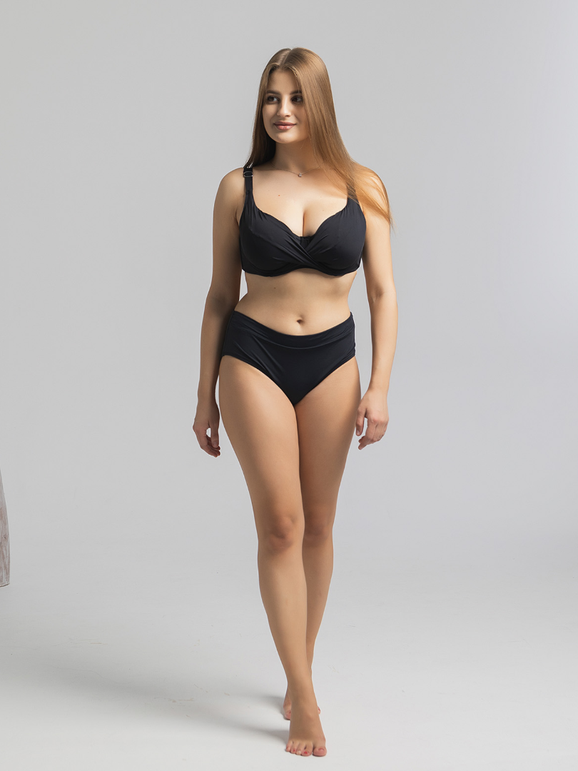 Confectionat din țesături de calitate superioară acest costum de baie oferă o senzație extrem de plăcută pe piele. Este rezistent la apă cu clor, asigurându-ți strălucirea pe termen lung, fără teama de decolorare. Sutien cu cupe moi, foarte elastice, cu armatură, cu bretele reglabile, închizătoare de metal la spate. Fiecare detaliu este lucrat cu atenție, cusăturile sunt rezistente și bine finisate, garantând un look impecabil. Slipii cu talie înaltă, dublură pe întraga suprafață. Designul ergonomic permite o potrivire perfectă, susținând și accentuând formele feminine, fără a fi constrângător.