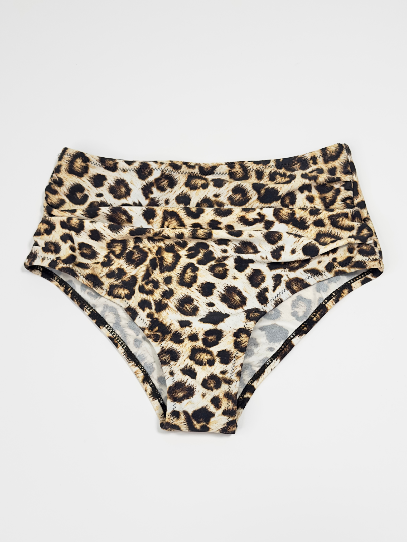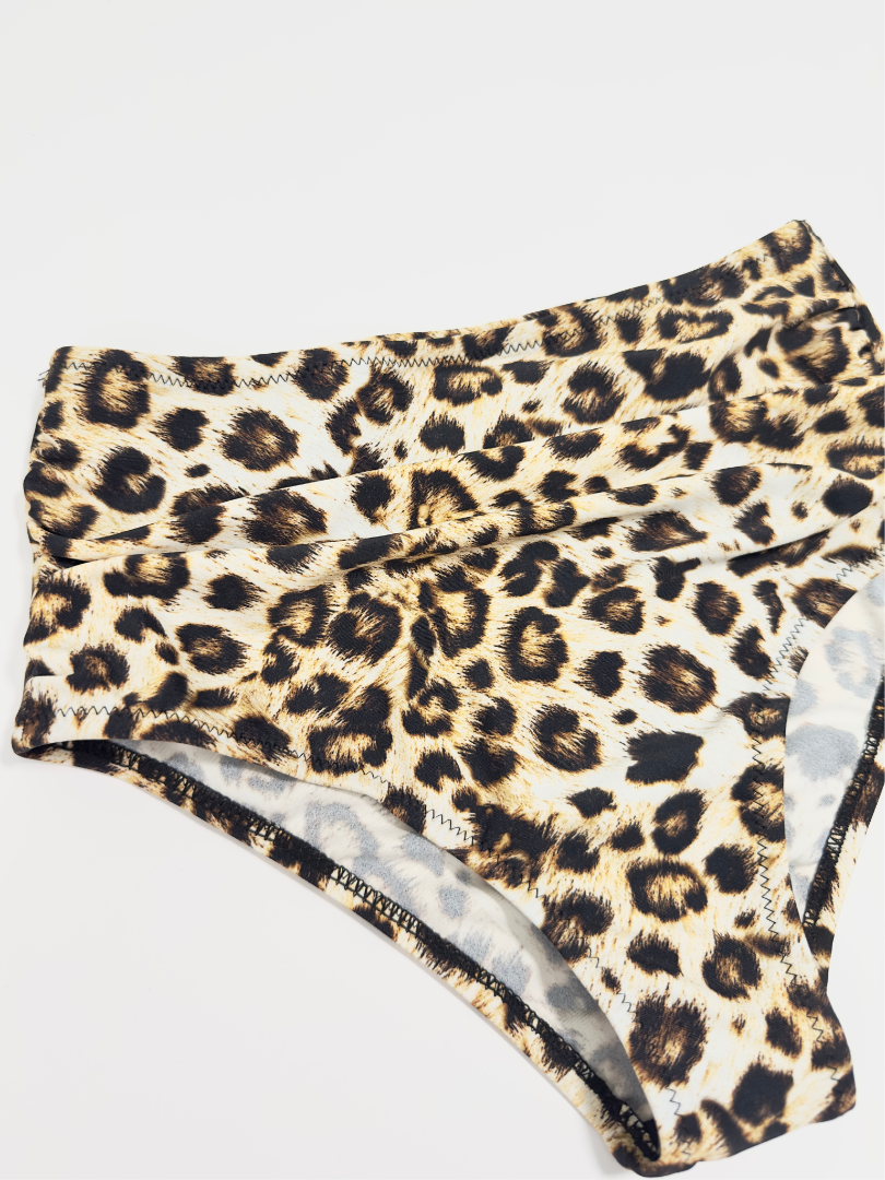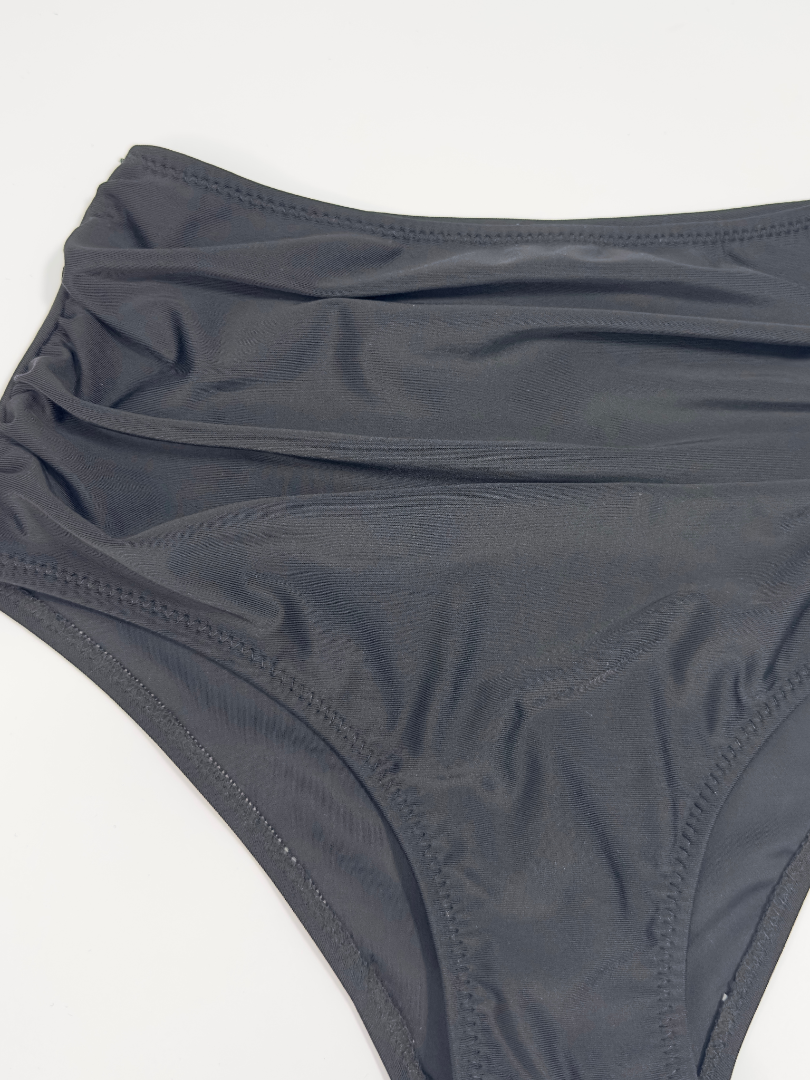 Slip de baie cu dublură pe întreaga suprafață, cu talie înaltă, cusături laterale încrețite pentru un efect drapat. Croială înaltă la spate.