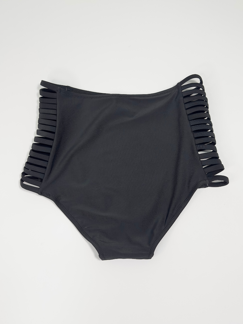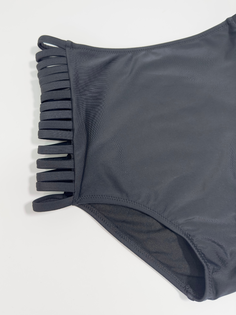 Slip de baie cu dublură pe întreaga suprafață, cu talie înaltă, decupat în laterale. Croială înaltă la spate.