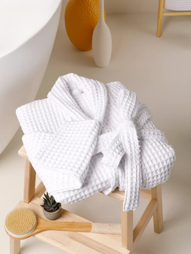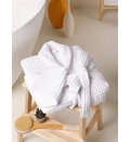 Realizat din material cu textură tip waffle (fagure), halatul este ușor, respirabil și are o capacitate excelentă de absorbție, oferind confort imediat după baie.