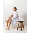 Acest halat de baie din bumbac 100% este alegerea perfectă pentru momentele de relaxare de acasă sau după duș.