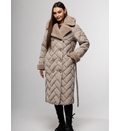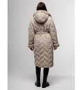 Cureaua accentuează talia și permite ajustarea hainei în funcție de siluetă, creând o formă feminină și armonioasă. Închiderea dublă cu nasturi și matlasarea atent realizată oferă o protecție suplimentară împotriva frigului, completând totodată aspectul modern și elegant al modelului.