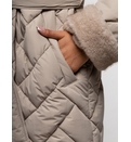 Alegând o haină de iarnă cu umplutură bio și blană artificială de nurcă, obții o piesă practică de îmbrăcăminte exterioară care îmbină confortul, căldura și eleganța. Acest model este ideal pentru femeile care apreciază stilul și calitatea. Designul modern, cu matlasare geometrică, oferă un aspect rafinat, iar croiala alungită protejează eficient împotriva vântului și frigului. O astfel de haină va deveni o piesă versatilă pentru oraș și purtare zilnică.