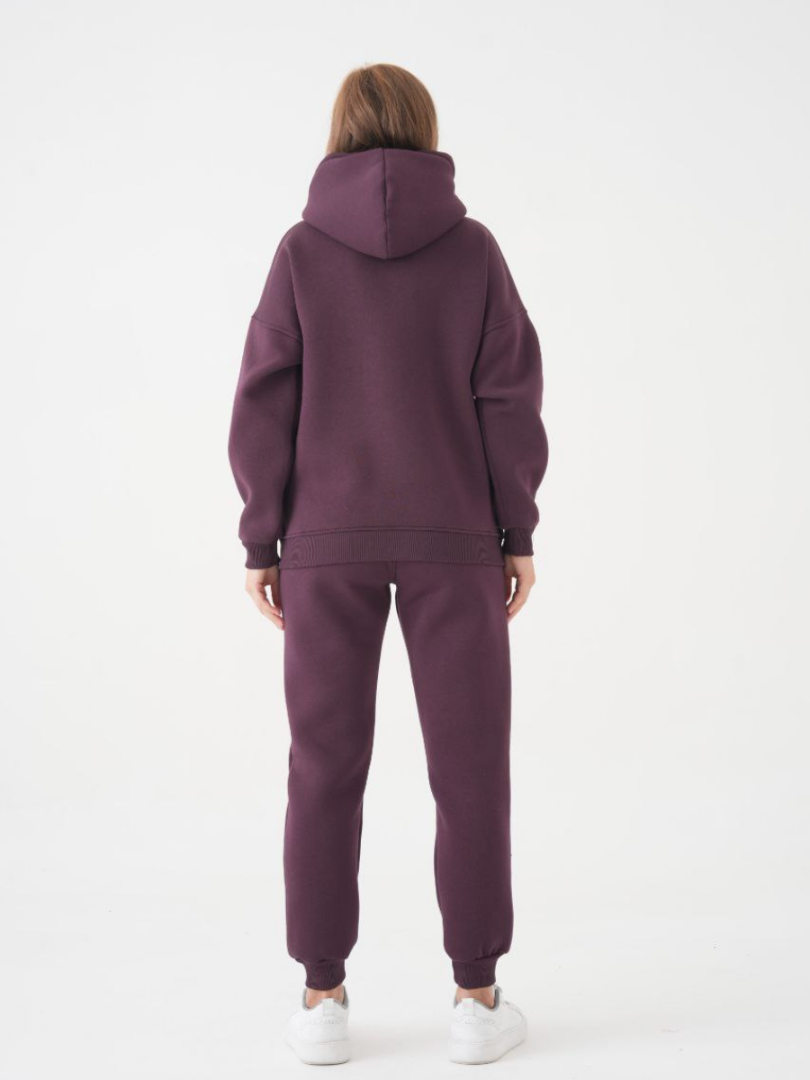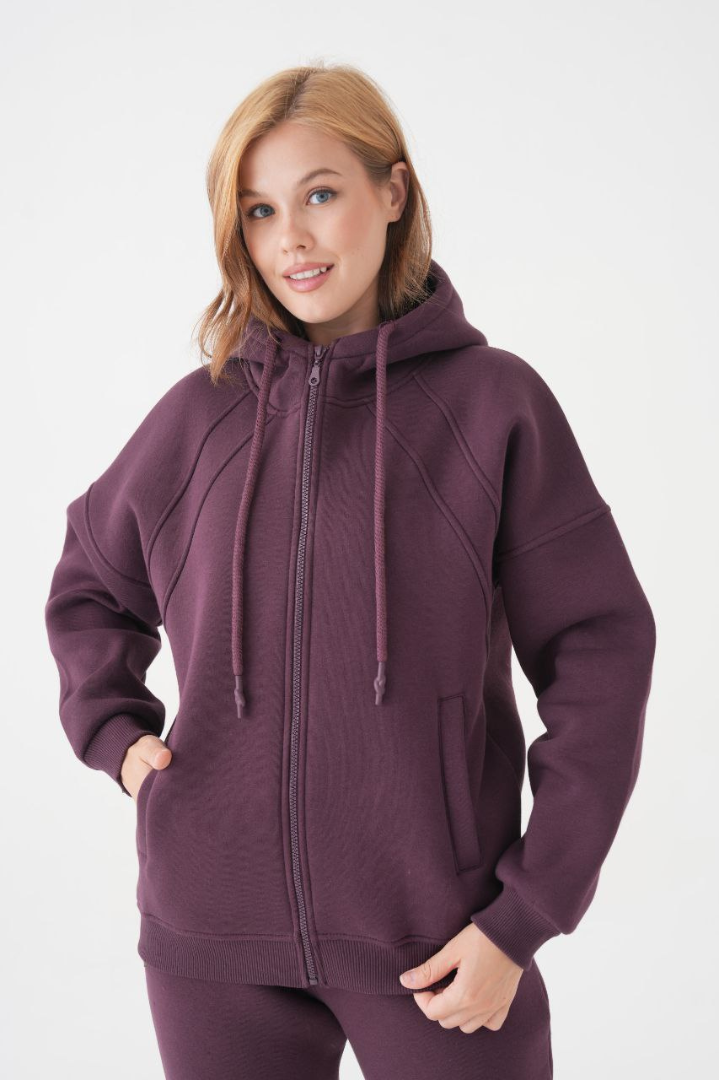Acest costum sport pentru femei este alegerea perfectă pentru zilele răcoroase, combinând stilul modern cu confortul absolut. Hanorac cu croială relaxed fit, mâneci lungi, glugă practică și buzunare laterale pentru un plus de stil urban și funcționalitate. Pantaloni de trening cu talie elastică, șnur ajustabil și buzunare, perfect adaptați pentru confort maxim și libertate de mișcare. Fleece la interior – materialul principal, foarte pufos pe partea interioară, menține căldura, fiind ideal pentru sezonul rece sau serile mai răcoroase.