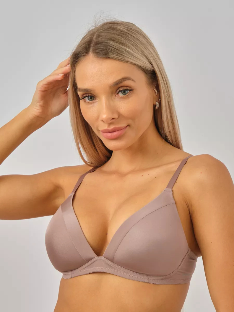 Sutien triunghiular din microfibră ultralight moale și lejeră. Nu are arcuri, cu cupe ușor căptușite și balene laterale care învăluie delicat bustul. Bretelele sunt îmbrăcate în microfibră și sunt reglabile în partea din spate.